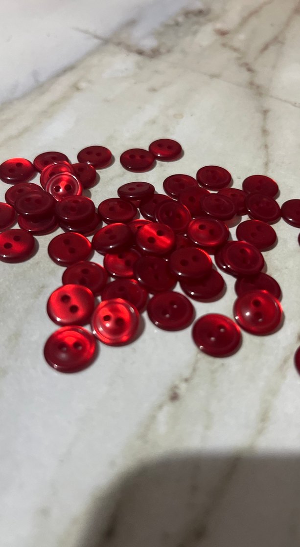 İki delikli, parlak kırmızı küçük düğmeler. El işi projeleri için uygundur.