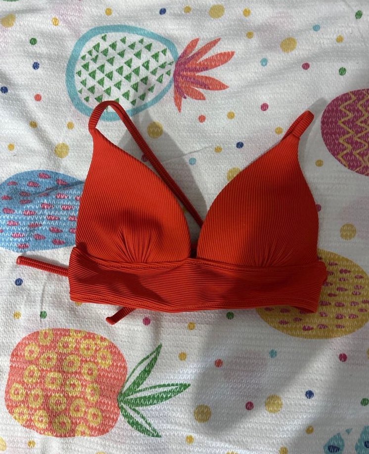 İnce askılı, kırmızı ve sade tasarımlı bu bikini üstü, cesur ve minimalist bir görünüm sunar. Plajda rahat ve şık kullanım sağlar. ️