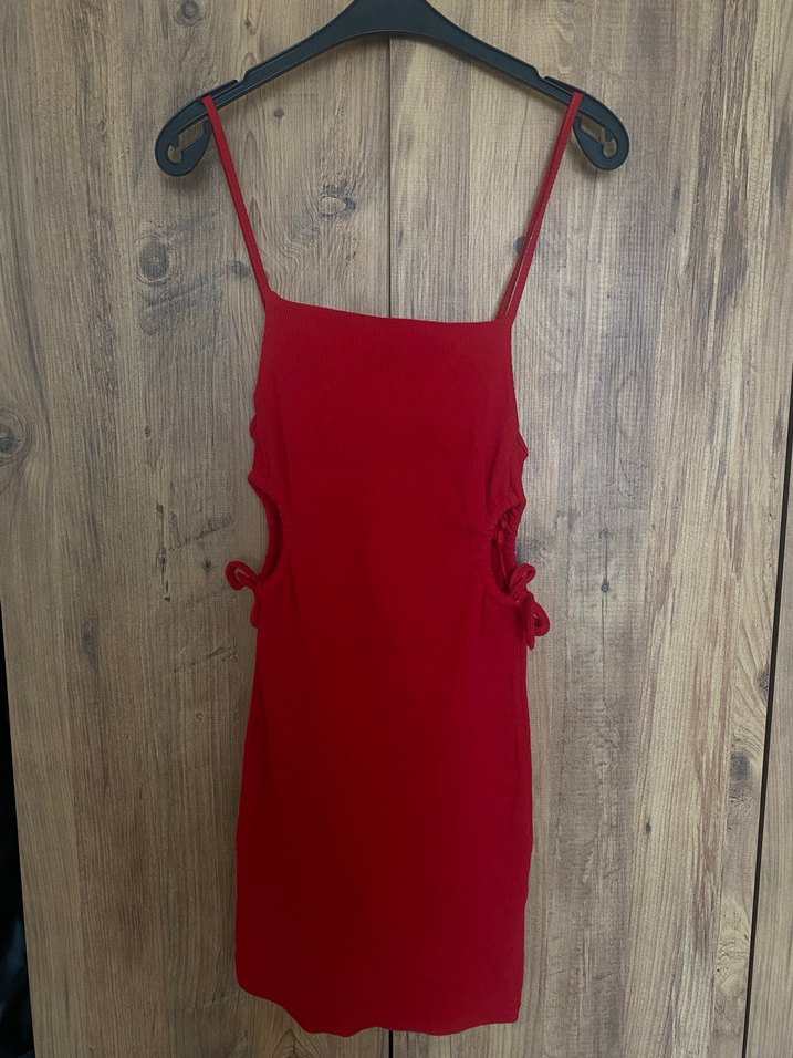 Kırmızı, ince askılı, yan bağcıklı mini elbise, yumuşak kumaştan üretilmiştir. Romantik akşamlar için uygundur.