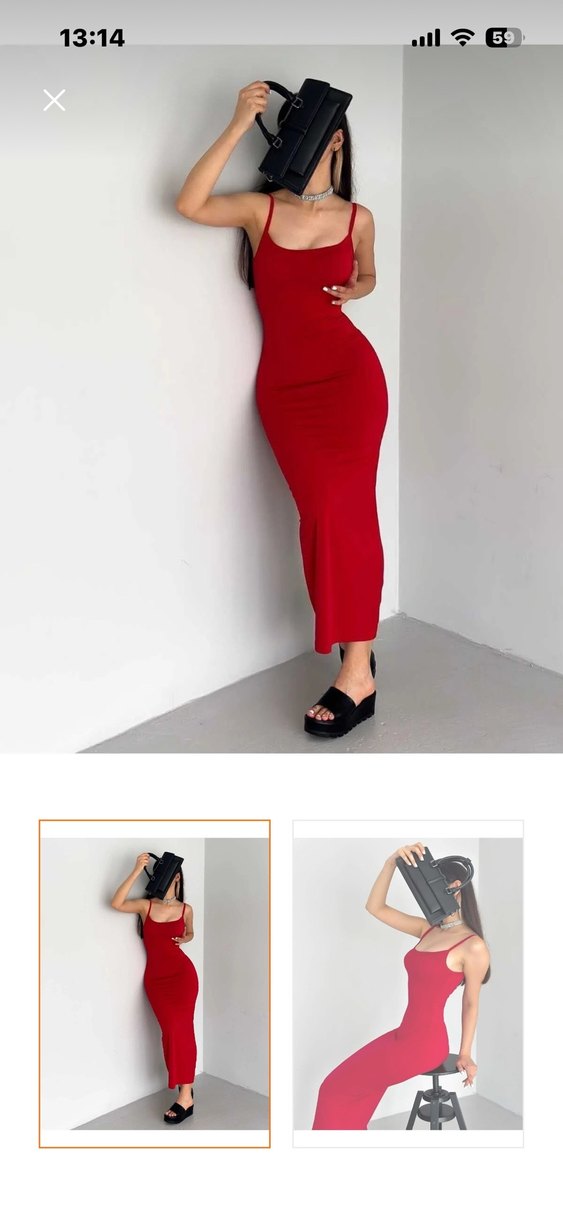 İnce askılı, V yakalı, kırmızı uzun elbise m beden sorunu yok beden değişikliği nedeniyle satışta