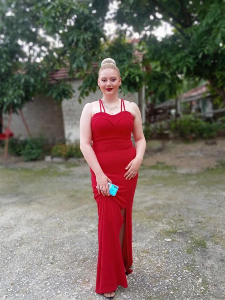 Kırmızı ipli arkadan çapraz Abiye Elbise