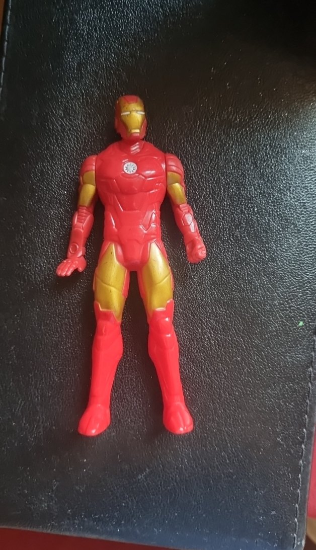Canlı kırmızı renkte Iron Man aksiyon figürü, detaylı tasarım ve hareketli eklemlerle donatılmıştır.