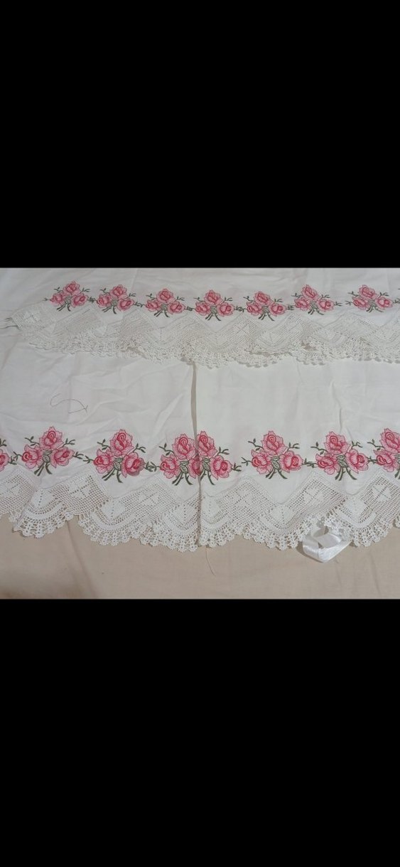 yastık iki yatak kenarı kırmızı işlemeli harika dandeli var