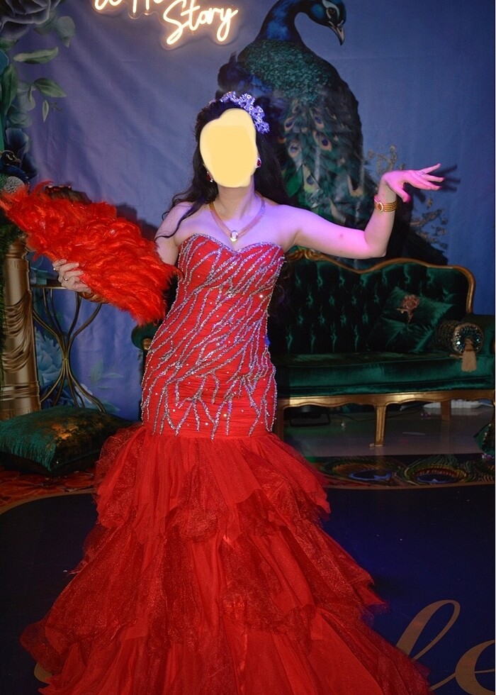 Kırmızı işlemeli balık kınalık abiye tuvalet