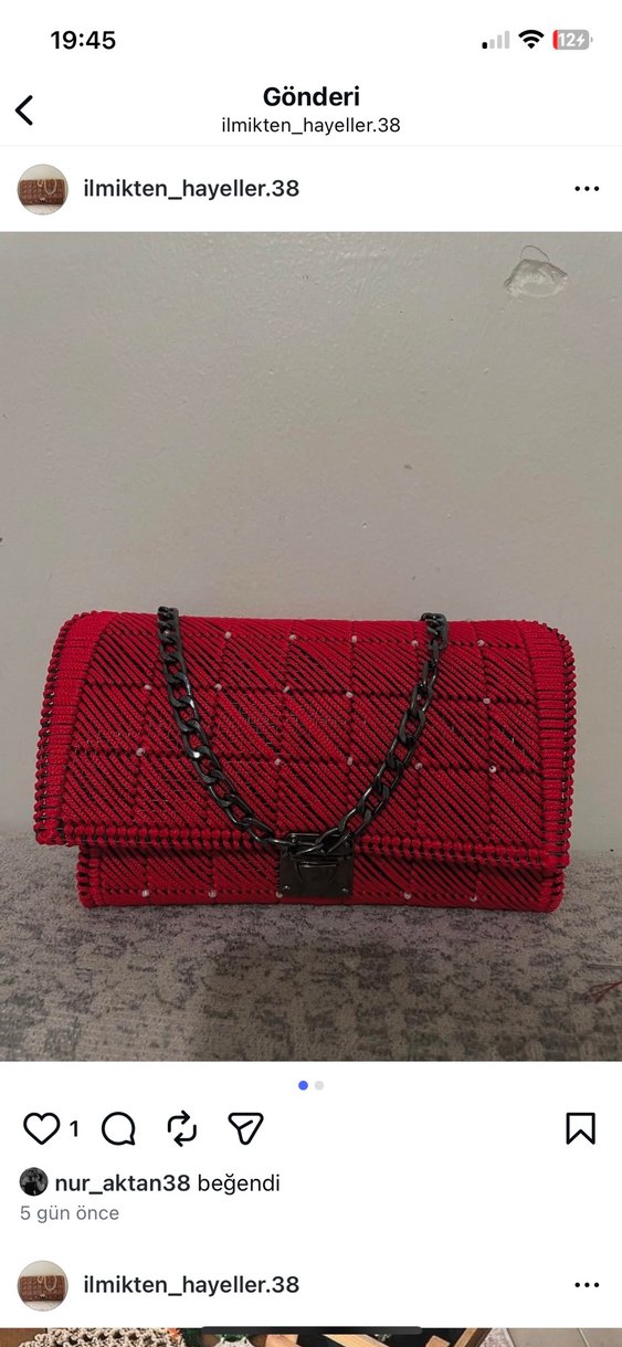 Kırmızı İşlemeli Boncuklu Kadın Çanta