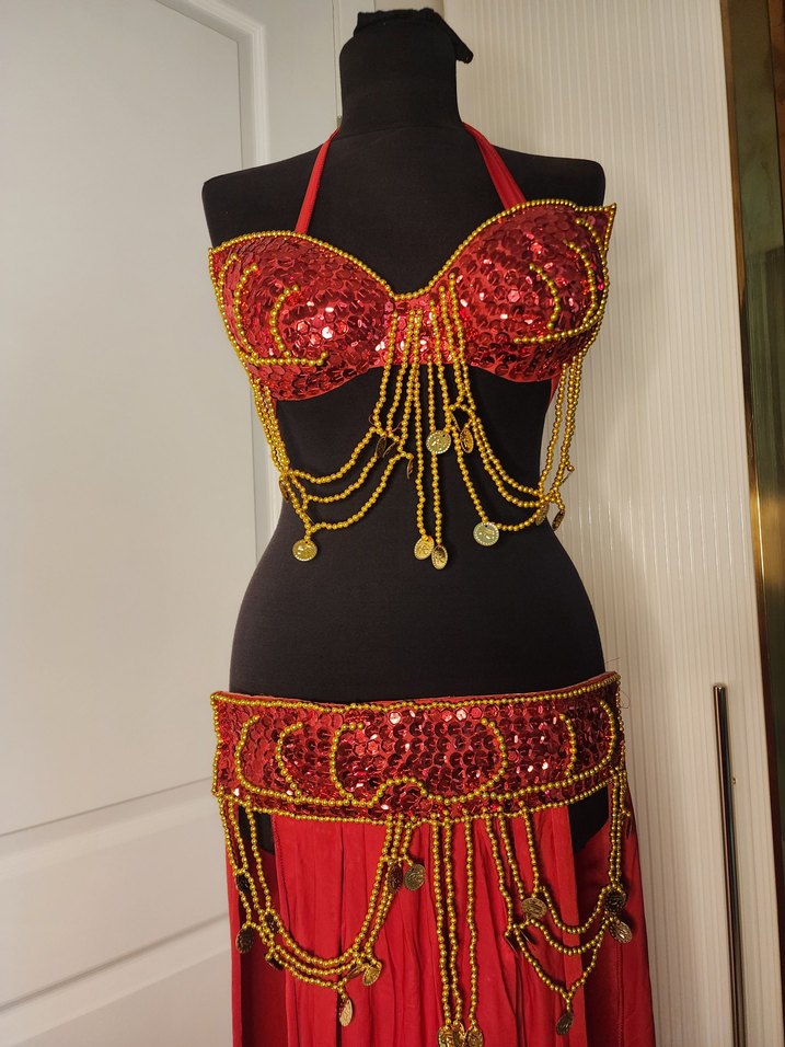 Kırmızı İşlemeli Boncuklu oryantal dans elbisesi