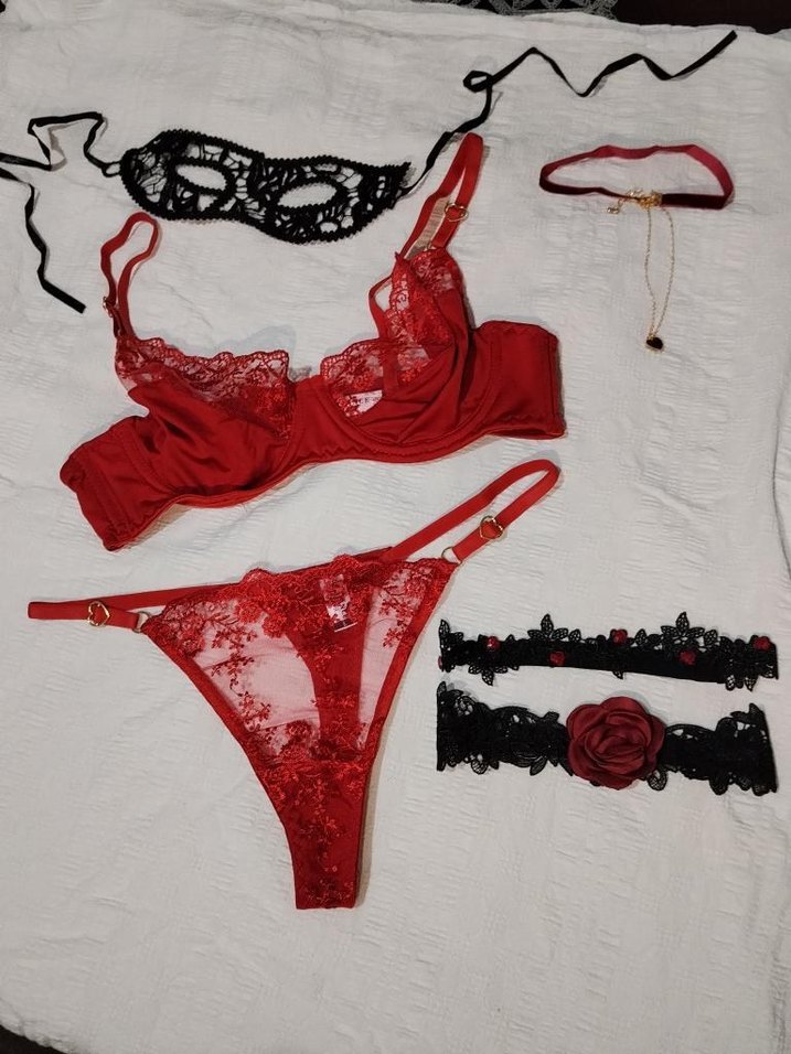 Kırmızı İşlemeli Gotik Mini Sütyen Takımı 80 Beden