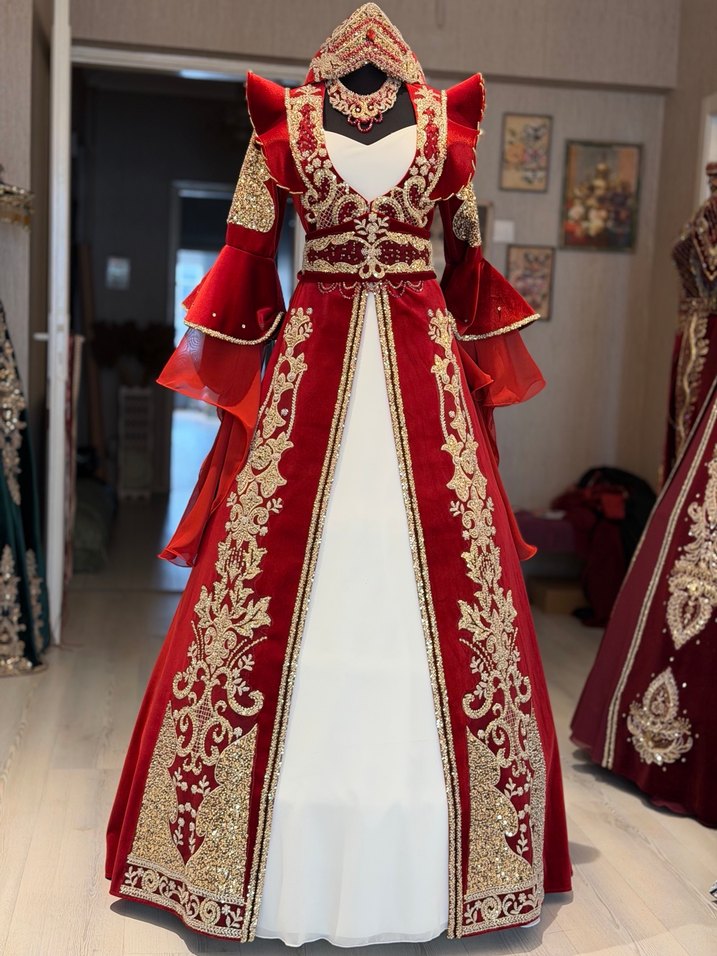 Kırmızı İşlemeli Kadın Bindallı Elbise