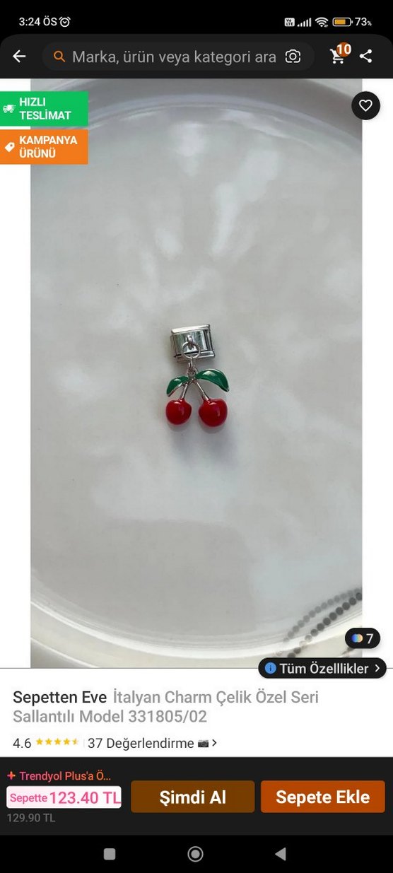 Parlak kırmızı renkte, işlemeli kiraz desenli ve zincir detaylı çelik kadın charm. Minimalist tarzda, romantik buluşmalara uygun.