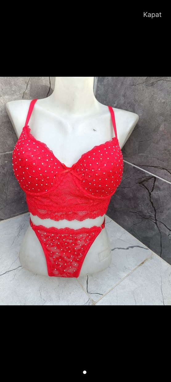 Kırmızı işlemeli sütyen ve tanga seti, kısa mini boyda ve bohem tarzda. İnce dantel ve renkli detaylarla göz alıcı bir görünüm sunar. ❤️