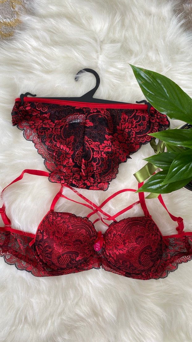 Kırmızı işlemeli mini sütyen takımı, bohem Paris tarzıyla kısa uzunluk ve zarif dantel detayları sunar.