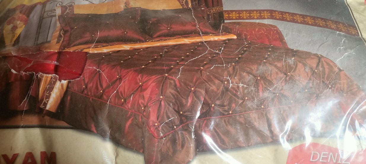 Parlak kırmızı kumaş üzerine işlenmiş detaylarla yatak örtüsü, dokulu ve zarif bir desen sunar. Yumuşak ve pürüzsüz dokusu vardır. ️