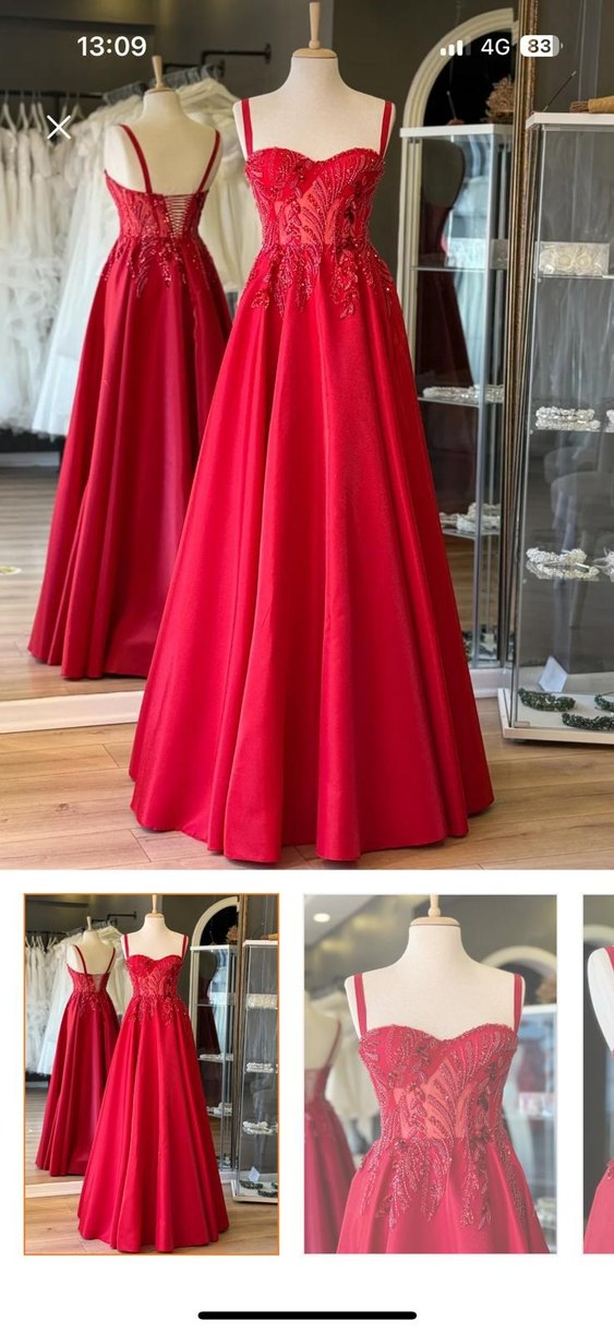 Kırmızı İşlemeli Uzun Abiye Elbise