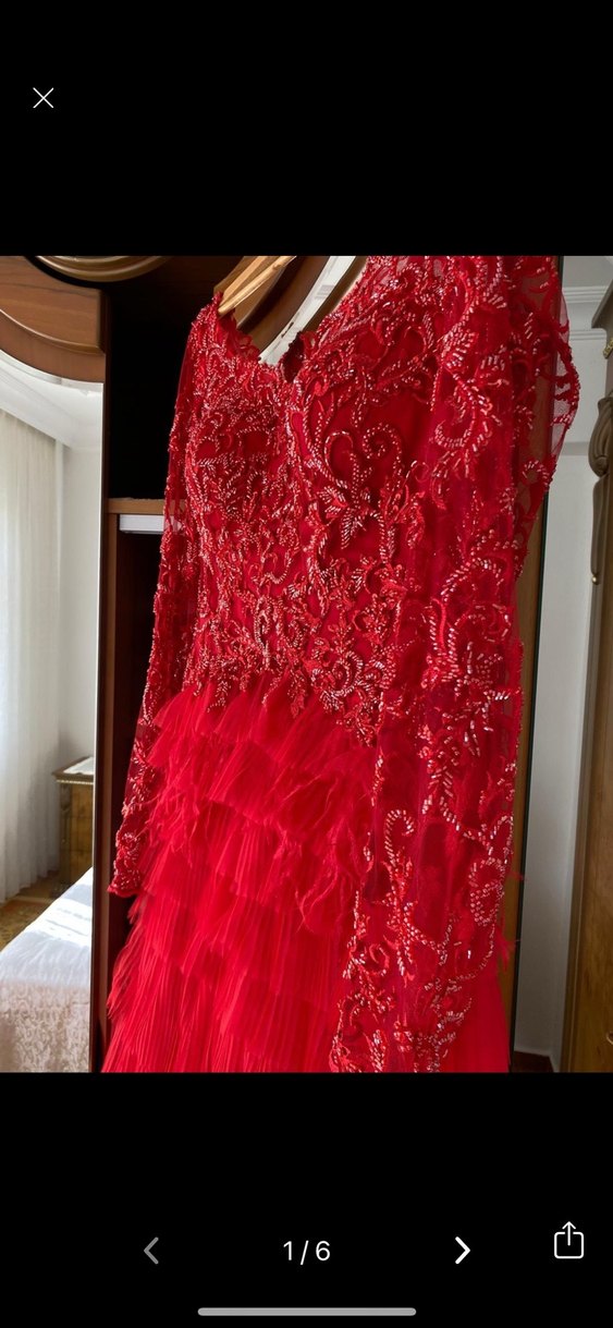 Kırmızı İşlemeli Uzun Kollu kına elbisesi