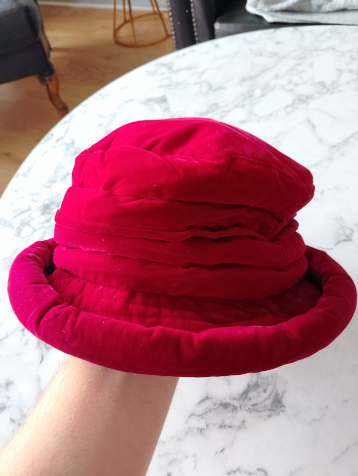 Kırmızı Kadife Kadın Şapka