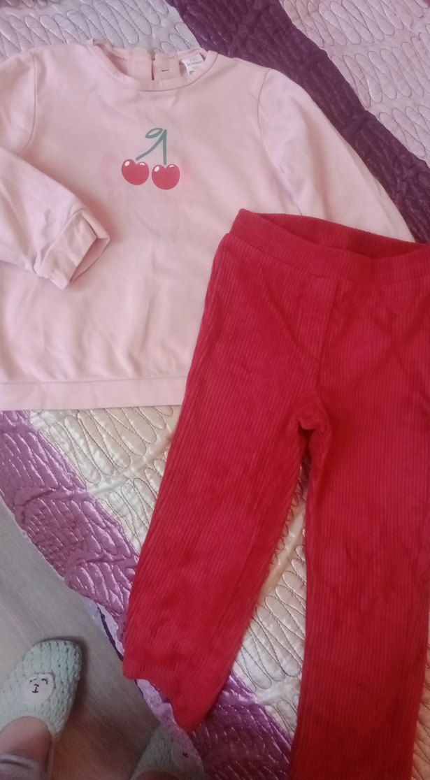 Kızlar için dar kesim, kırmızı kadife tayt ve sweatshirt.İsterseniz ayrı ayrı da alabilirsiniz.