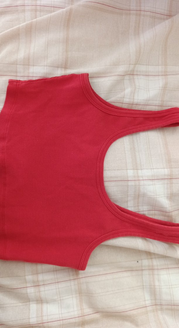 Kırmızı kadın atlet, kayık yaka ve dar kesimdir. Düz, renkli ve rahat sentetik kumaştan yapılmıştır.