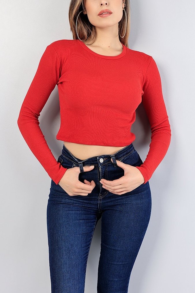 Kırmızı Bisiklet Yaka Fitilli Triko Bluz. Standart beden esnek m beden uyumlu. Temiz sorunsuz ürün.