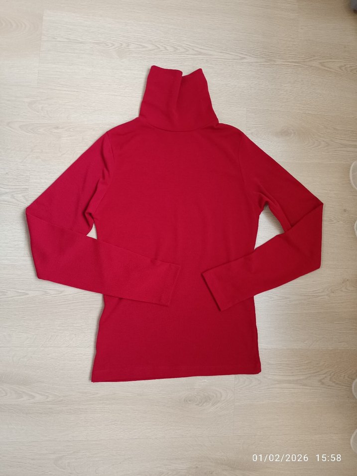 Bu kırmızı kadın boğazlı ince triko, uzun kollu ve vücuda oturan kesime sahiptir. Yumuşak ve sıcak kumaştan üretilmiş, gündelik ve renkli bir sokak stili sunar.