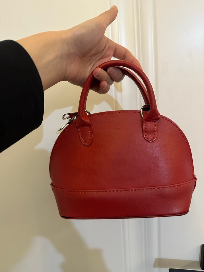 Fermuarlı kapanış ve yuvarlak saplara sahip kadın çantası. Modern klasik Paris tarzında, günlük kullanım için uygundur.