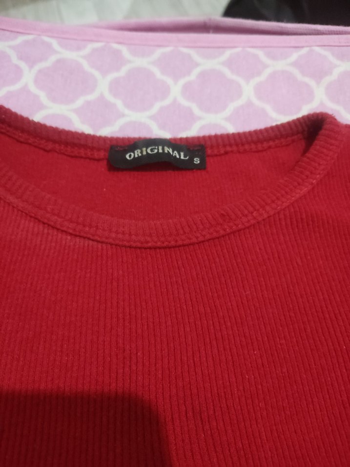Dar kesim, yuvarlak yakalı yumuşak sentetik kumaştan canlı kırmızı renkte. Düz deseniyle rahat sokak stiline uygun.