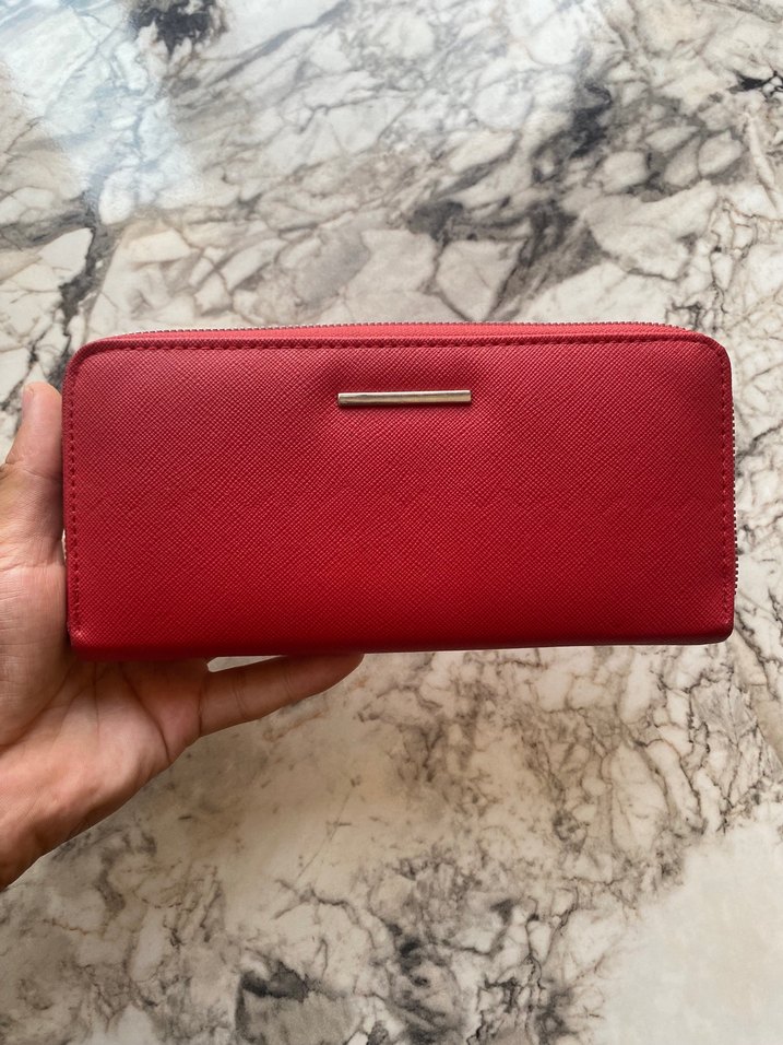 Kırmızı kadın cüzdan, fermuarlı ve modern klasik sade tasarıma sahiptir, günlük kullanım için uygundur.