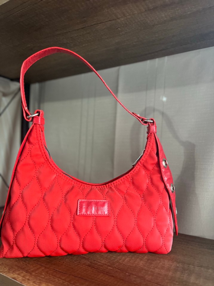 Yumuşak sentetik kumaştan kırmızı kadın omuz çantası, fermuarlı kapama özelliğine sahip. Minimalist tasarım, günlük ve sokak stiline uygun. -sıfırdır-paketlidir