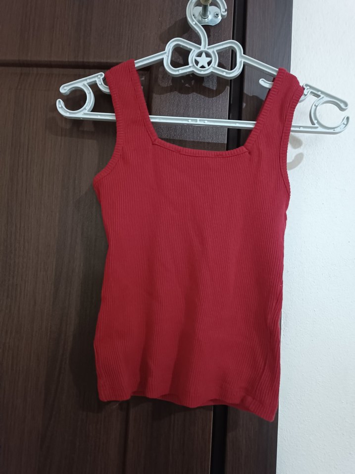 Kırmızı fitilli askılı atlet, straplez yakaya sahiptir ve yumuşak sentetik kumaştan üretilmiştir. Minimalist, günlük sokak stili için uygundur.