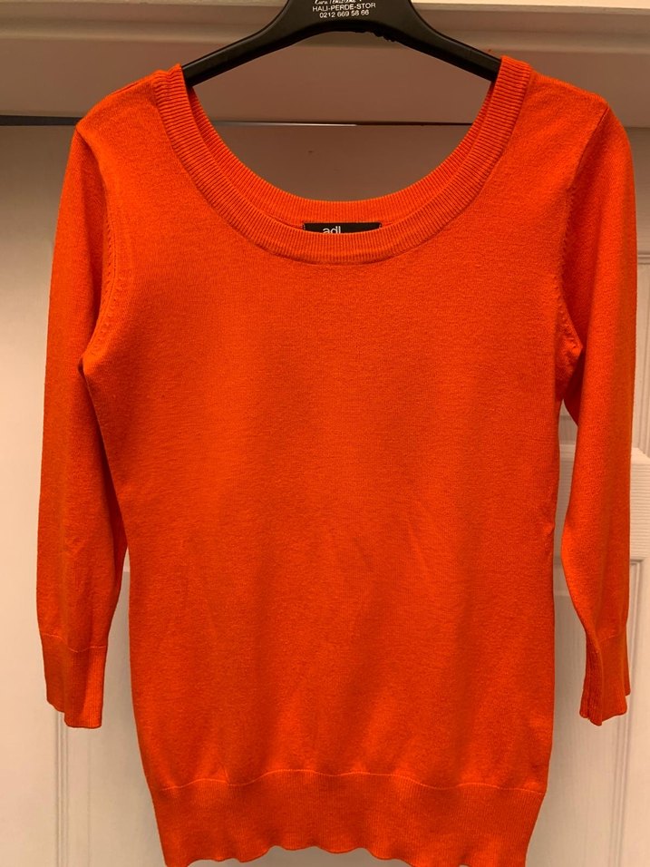 Kırmızı yün kazak, yuvarlak yaka ve uzun kolludur. İnce ve renkli yapısıylagünlük sokak modasına uygundur. Normal midi boyda, zahmetsiz şıklık sunar.