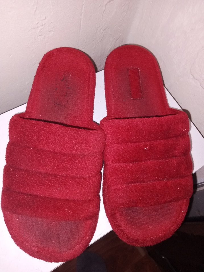 Kırmızı Kadın Kadife Terlikler Velcro Bantlı