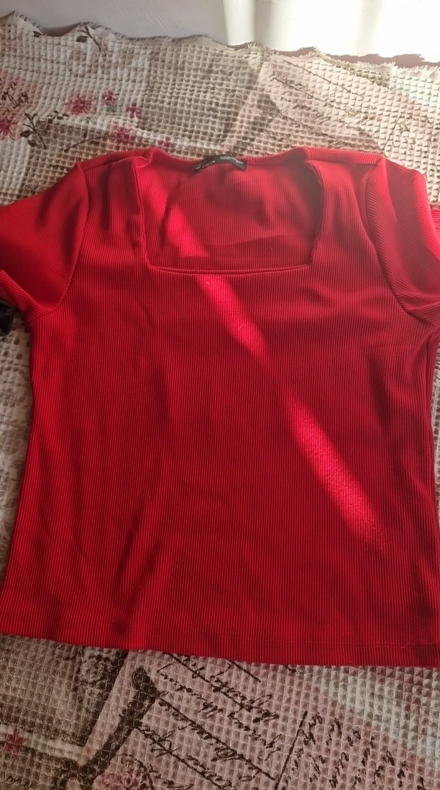 Kırmızı Kadın Kısa Kollu Dar Kesim Tişört