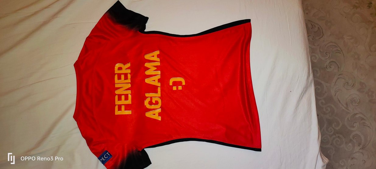 Bu kırmızı erkek forması, kısa kollu ve bisiklet yakalıdır. Yumuşak ve sıcak kumaştan yapılmıştır, baskılı renkli desen Spor ve sokak stiline uygundur.