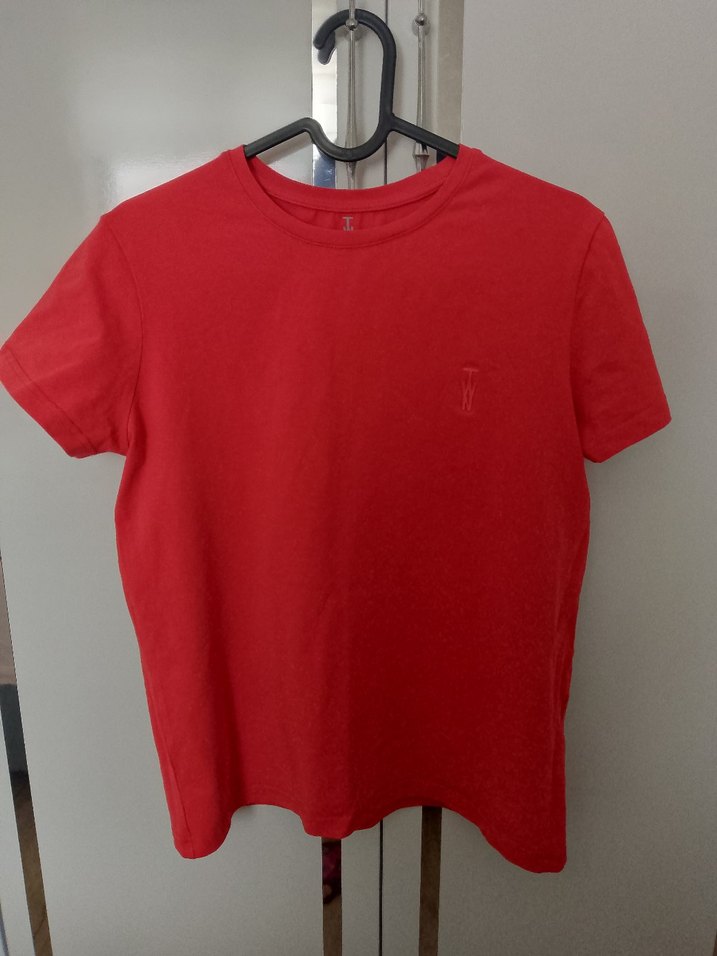 Parlak kırmızı renkte, kısa kollu ve bisiklet yakalı, hafifçe vücuda oturan kadın tişörtü. Minimalist ve desensiz tasarımıyla günlük kullanıma uygundur.