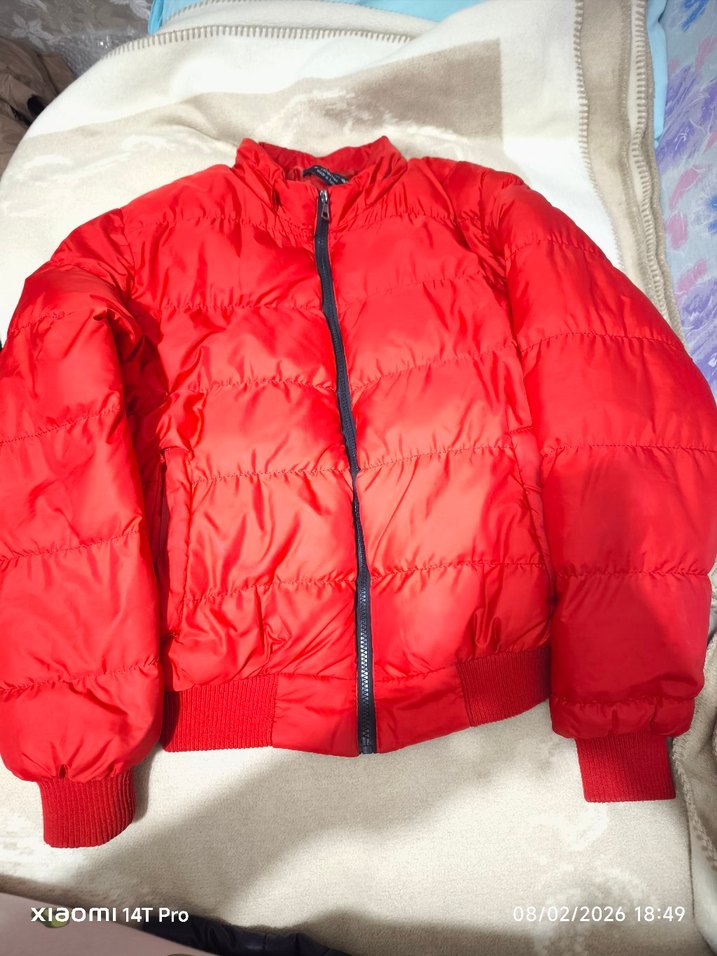 Fermuarlı, yüksek yakalı, uzun kollu, kırmızı renkli, yumuşak ve sıcak kumaştan yapılmış kadın kışlık mont. Rahat sokak tarzı için uygun. ❄️