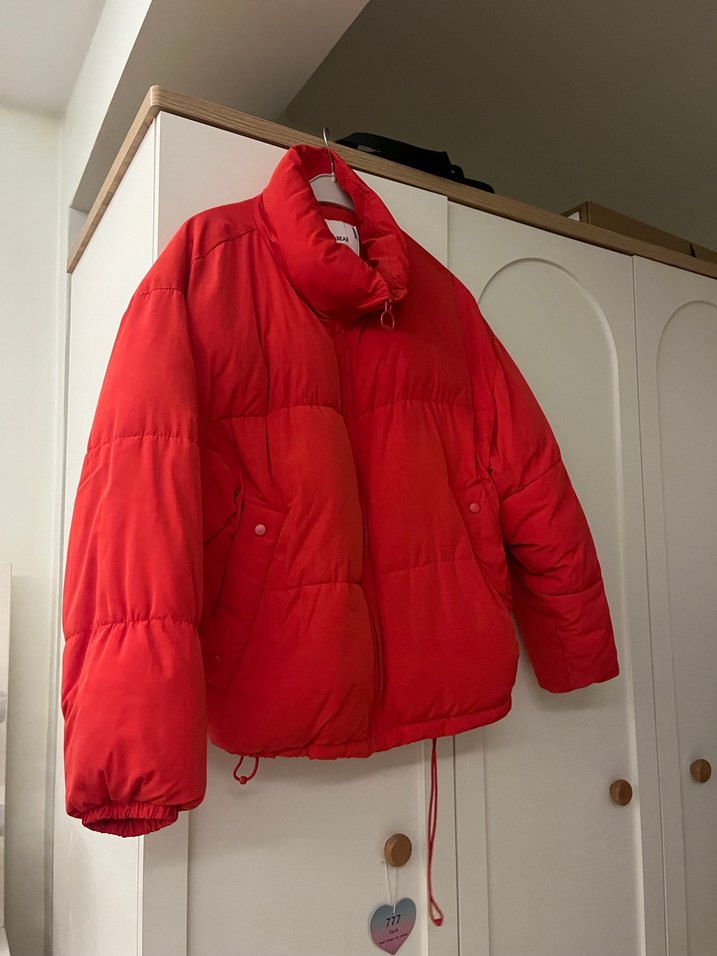 Kadınlar için yüksek yakalı, uzun kollu, bol kesim kışlık mont. Yumuşak kürk kumaştan, parlak kırmızı renkte, fermuarlı cepleriyle rahat sokak stili sunar. ❄️