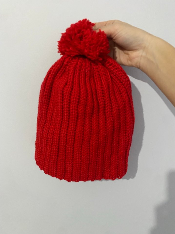 Kırmızı renkli, örgü dokulu, üstünde ponpon olan yumuşak ve rahat kadın bere. Annem 2 tane örmüştü birini satıyorum hiç kullanılmadı