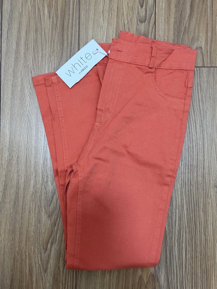 Narçiçeği etiketli 2 beden 36 beden, pantolon. Kırmızı pamuk kumaştan, normal boyda ve regular fit kadın pantolon. Günlük kullanıma uygun rahat normcore tarzda.