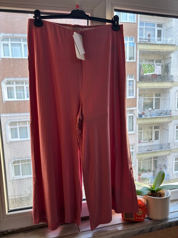 Kırmızı Kadın Pilili Bol Kesim Pantolon