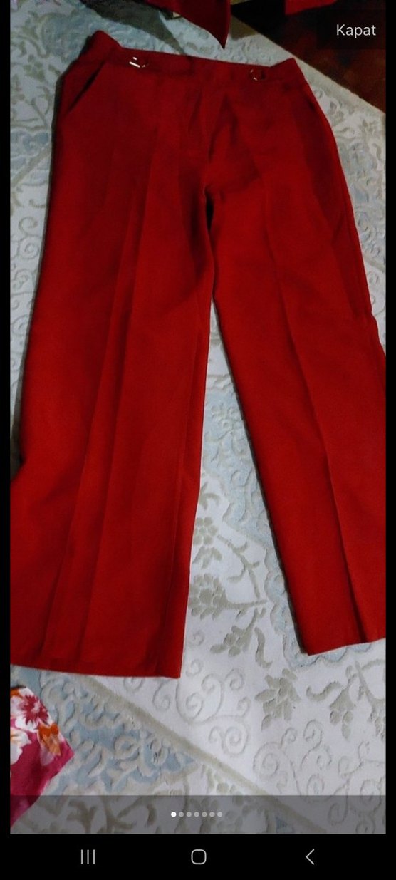 Kırmızı Kadın Pilili Kumaş Pantolon
