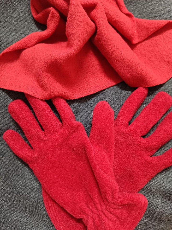 Yumuşak ve sıcak kumaştan örülmüş kırmızı kadın eldivenler, rahat sokak stili için uygundur. Sade ve konforludur.
