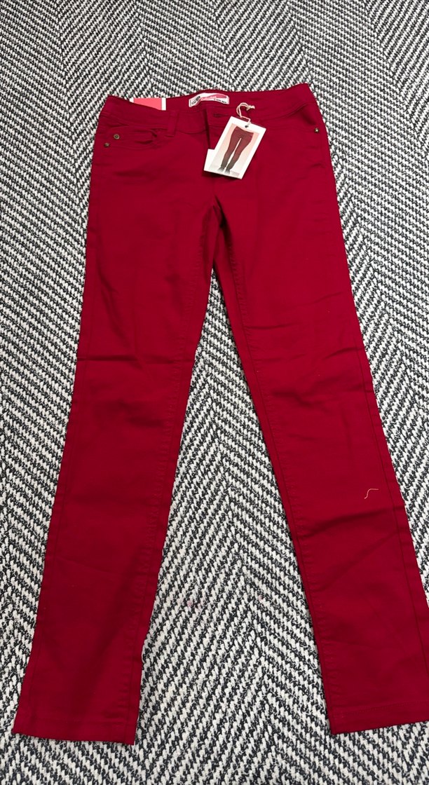 Kırmızı renkte, regular fit ve normal boyda, fermuarlı kadın kumaş pantolon. Sentetik kumaştan üretilmiş, günlük ve sokak stiline uygun.