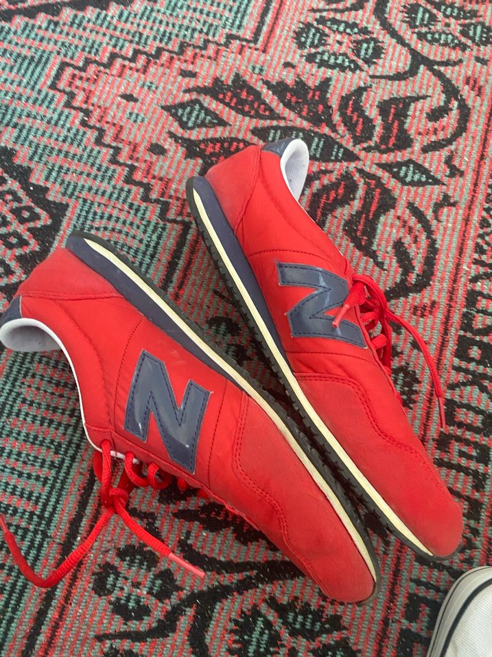 Kırmızı renkli, düz tabanlı kadın spor ayakkabısı. Velcro ve bağcıklı, kauçuk malzemeden üretilmiş. Spor ve sokak stili için uygun, renklidir ve desensizdir.