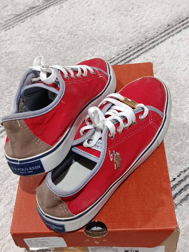 Kırmızı kadın spor ayakkabılar, wedge topuklu ve baskılı detaylara sahip. Kauçuk tabanlı, cırt cırtlı ve sportif sokak stiliyle uyumlu.