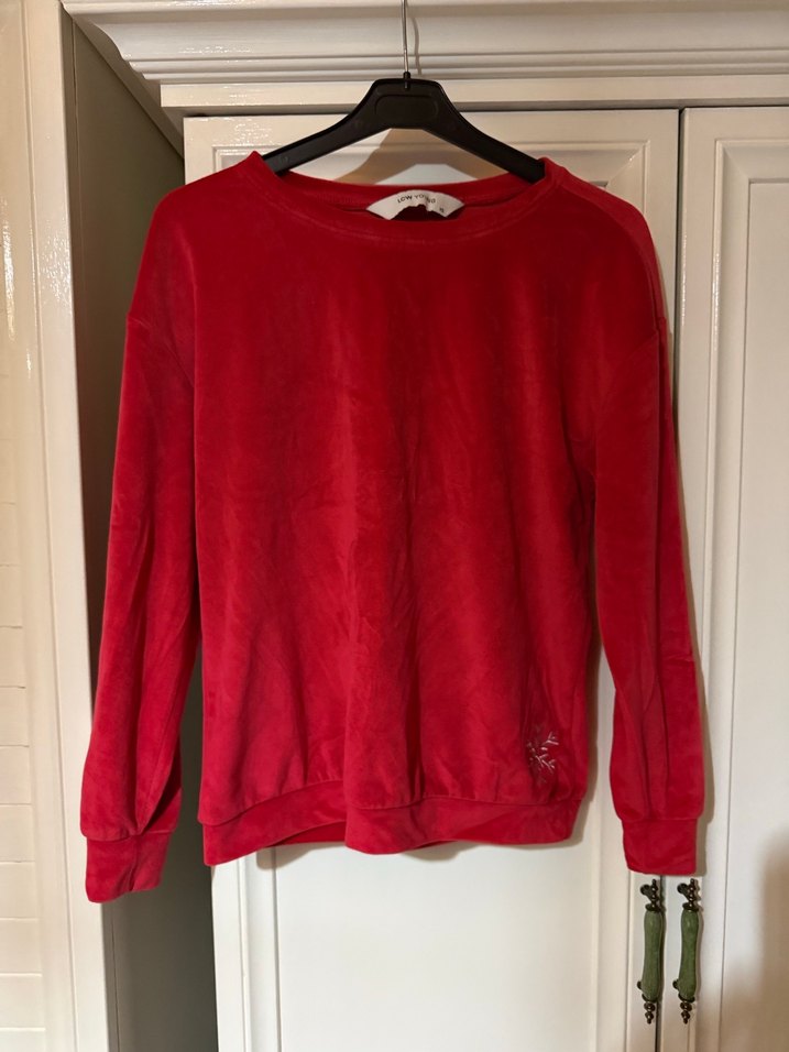 Kırmızı renkte, uzun kollu ve yuvarlak yakalı kadın sweatshirtü. Yumuşak ve sıcak kumaştan, rahat kesimle günlük kullanım için uygundur.