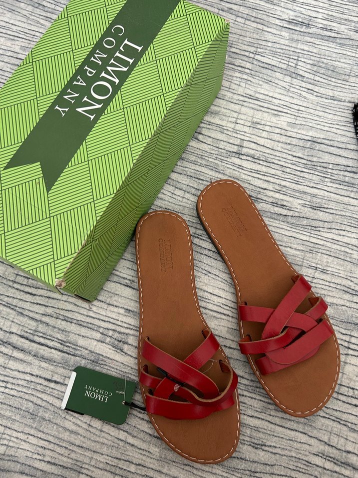 Kırmızı bantlı deri terlik. Boyner’den alınmıştır. 37 numara tam kalıp ve ince ayaklar için uygundur.