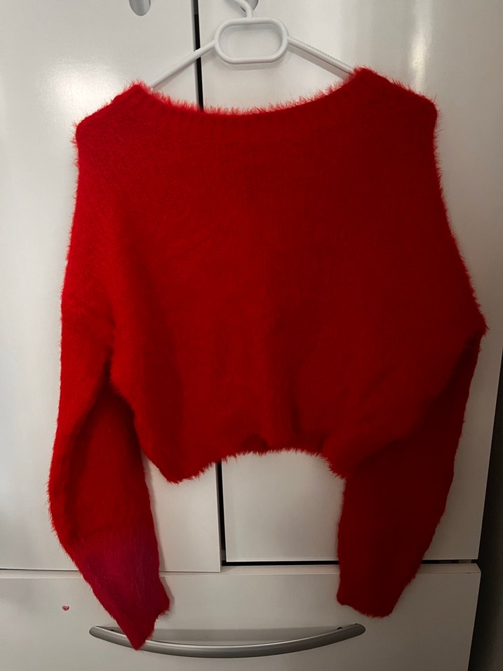 Yumuşak yünden uzun kollu ve bisiklet yaka, fitted kesim kırmızı kadın triko. Günlük kullanım için şık ve rahat. Fotoğrafta arkadında bir çizgi gözüküyor ama kendinden o şekilde giyince düzeliyor