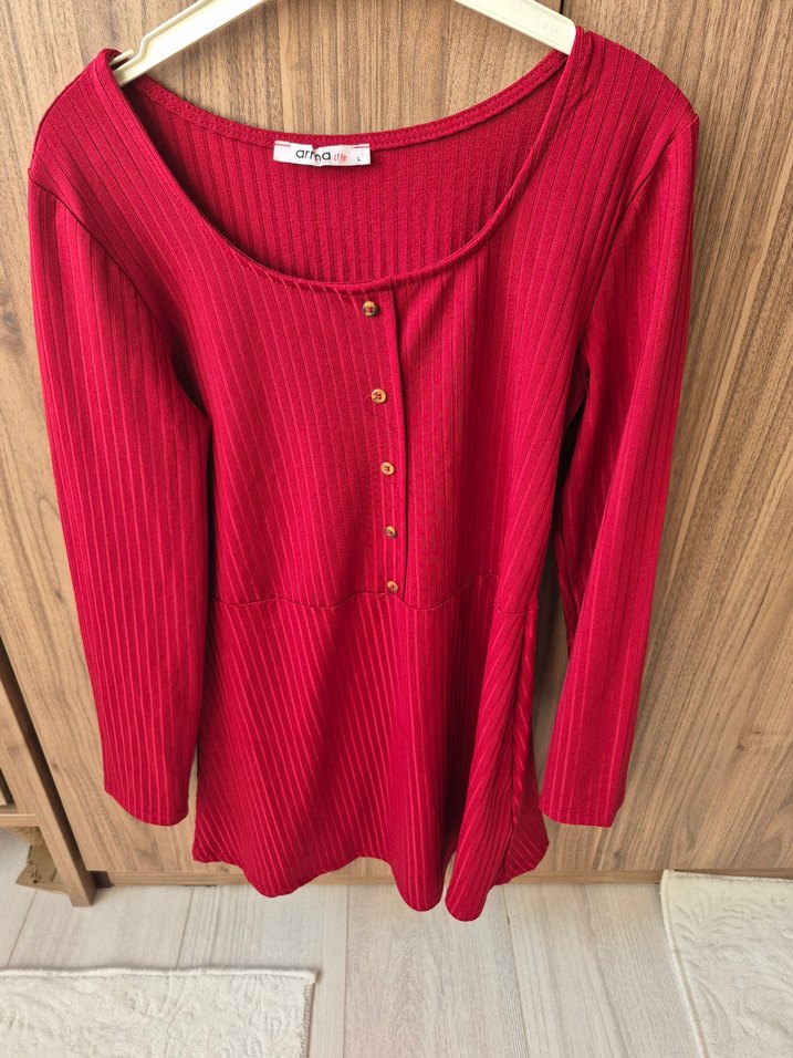 Kırmızı, parlak renkte, uzun kollu ve tek renk kadın triko bluz. Triko kumaştan, pileli dokusu ve normal midi boyuyla günlük kullanıma uygundur.