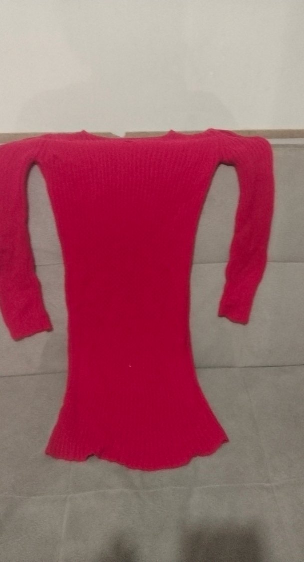 Kırmızı, fitted kesim triko kazak, yuvarlak yaka ve uzun kollu. Günlük kullanıma uygun, midi boy ve desensiz tasarım.
