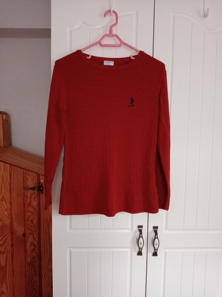 Uzun kollu, yuvarlak yakalı kırmızı triko kazak, rahat ve günlük kullanıma uygun şık bir seçenektir. Koyu kırmızı rengi sıcaklık katar.