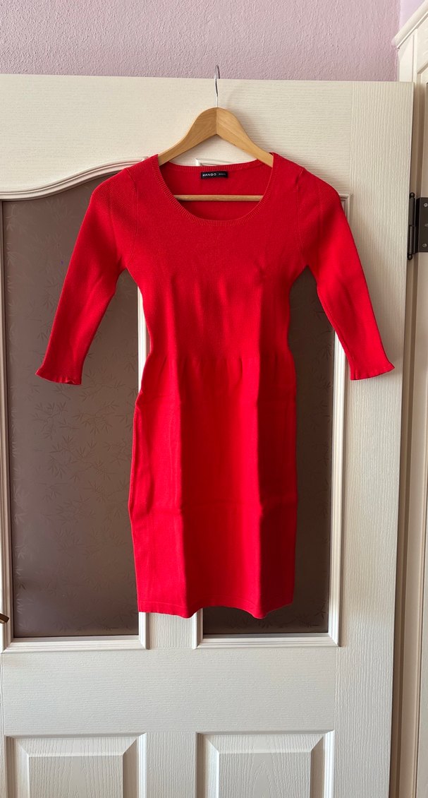 Kırmızı, uzun kollu, bisiklet yaka, vücuda oturan triko midi elbise. Minimalist ve normcore tarzıyla günlük kullanıma uygun, zahmetsiz şıklık sunar.